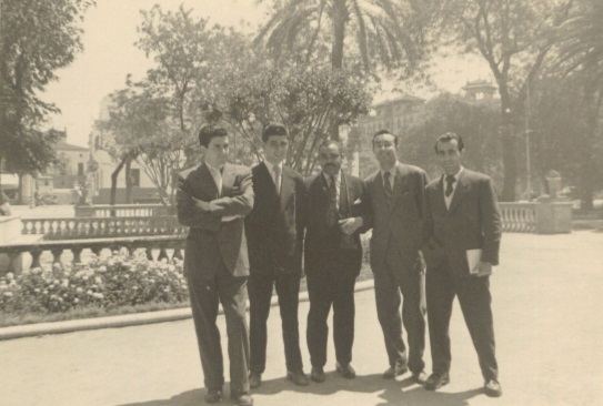 Manuel Mantero, Ángel García López, el poeta uruguayo Generoso Medina, Manuel García Viñó y José Manuel García Gómez. Sevilla, 1956.