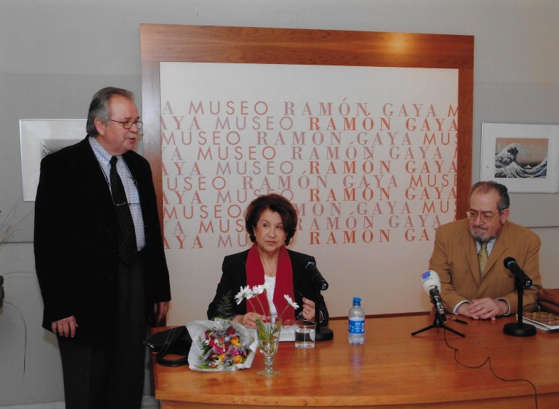 En el Museo Ramón Gaya (Murcia), de izquierda a derecha: Manuel Fernández-Delgado y Cardá, director del Museo, Dionisia García y Manuel Mantero, que fue presentado por los anteriores (2006).
