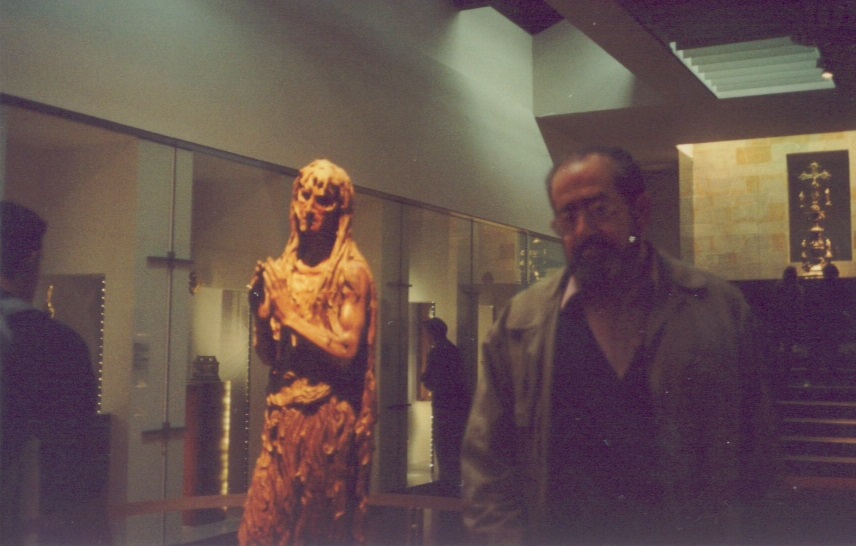 Manuel Mantero en Florencia junto a la Magdalena de Donatello (2002)